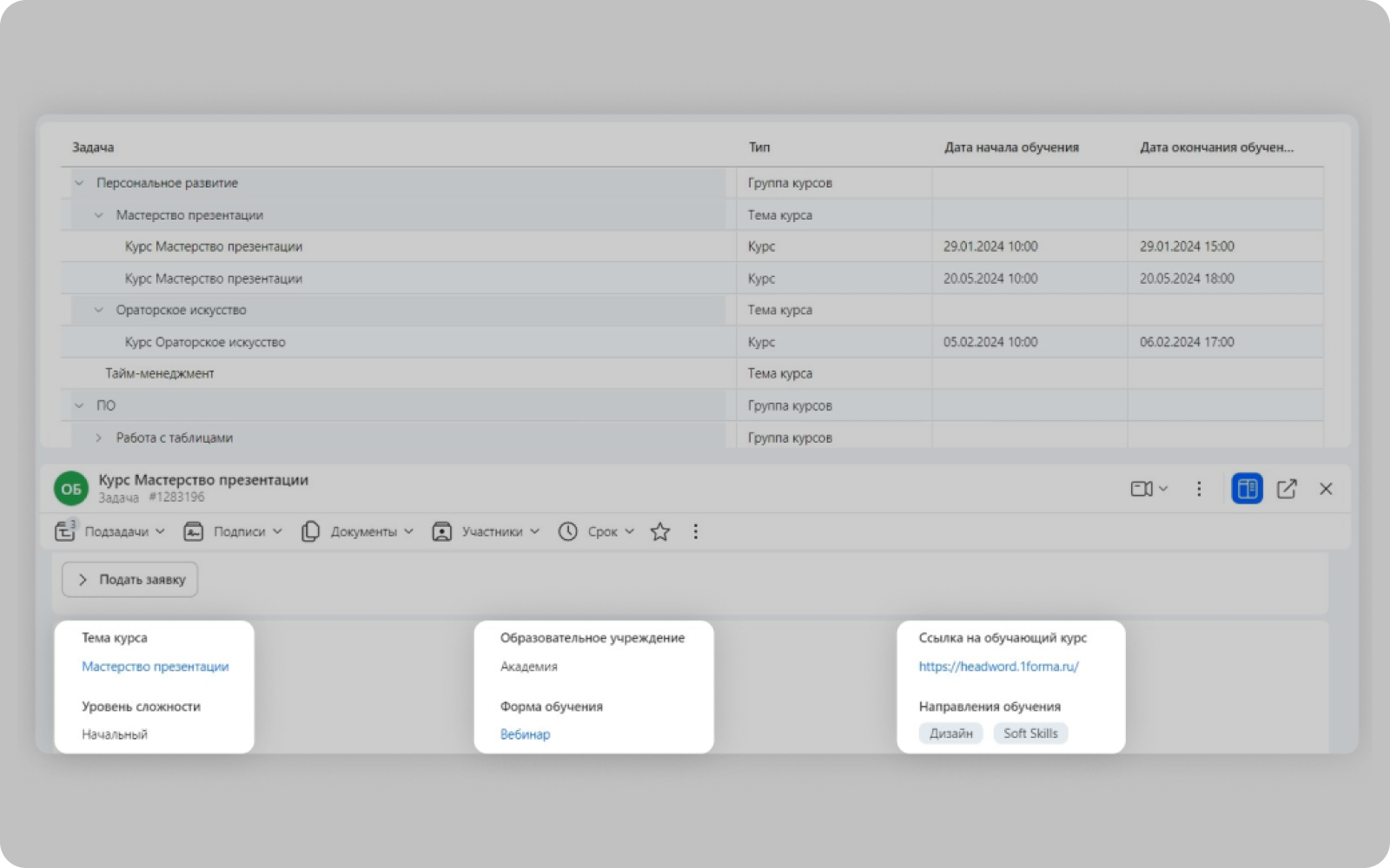 Согласовывайте план обучения. Плановые и фактические затраты рассчитываются автоматически.