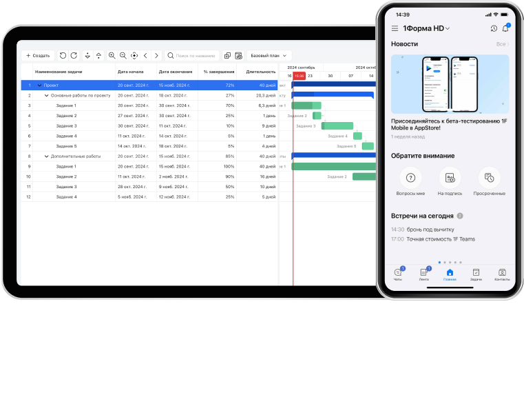 Возможность устанавливать и менять дату старта всего проекта — в зависимости от неё переносятся даты этапов, задач и вех.